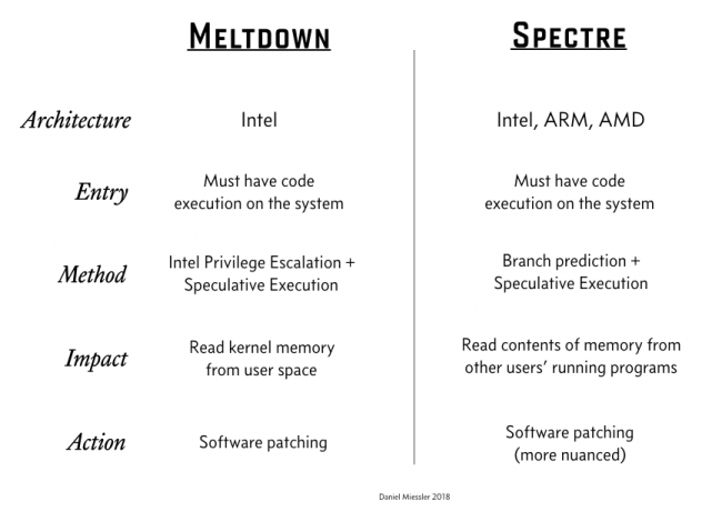 20 Jan 20:10 – Spectre sårbarhet 1 och 2 har visat sig betydligt svårare att patcha då intel har erfarit problem med de microcodes som de släppt och de jobbar på att fixa till buggarna i de. Samtidigt jobbas det från andra håll med så kallade reptoline mitigation, där man patchar binärer som t.ex. hypervizor eller operativsystem för att skydda mot Spectre.
