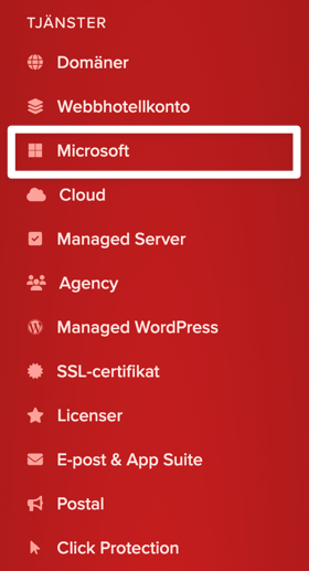 Microsofti menyn till vänster.