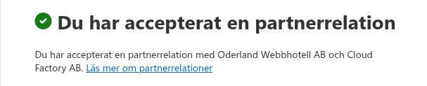 Du kommer nu få godkänna en partnerrelation med vår underleverantör CloudFactory och oss på Oderland. Om du inte godkänner den kommer du inte kunna hantera Microsoft-licensen via oss.
