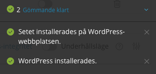- Var noga med att du ser att både WordPress och setet installerats korrekt. Det tar en stund för WebbPress att installeras efter WordPresskärnan är färdiginstallerad.