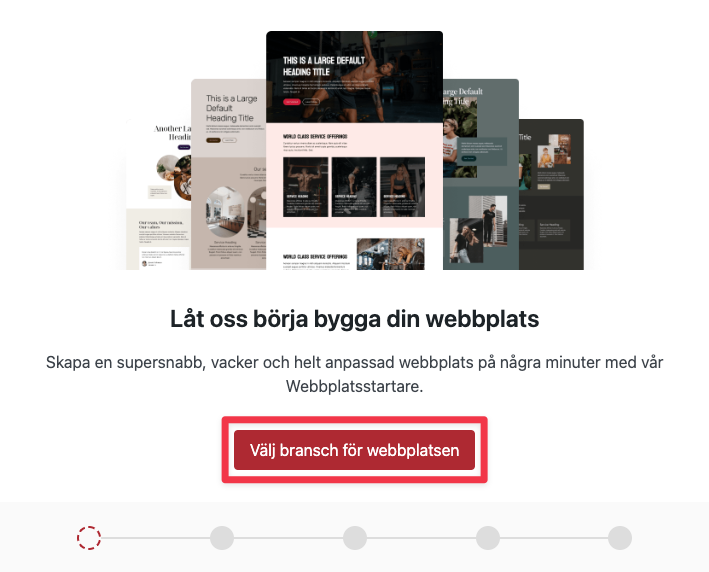 Om du inte får upp lanseringsflödet direkt, klicka på knappenVälj bransch för webbplatsen.
