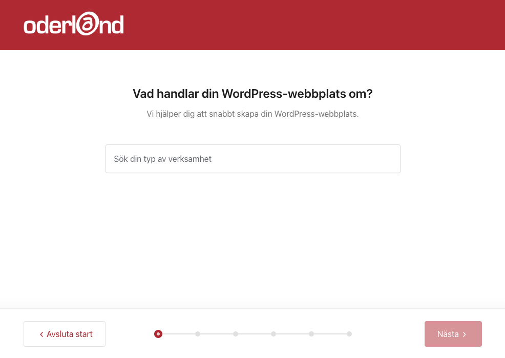 - Du är nu redo för att gå vidare och börja använda WebbPress. För att göra det, logga in på admindelen av din nya WordPressinstallation och följ de steg som presenteras för dig.