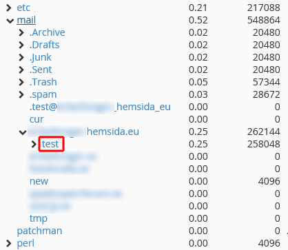 När du har hittat en mapp som du vill undersöka närmare kan du klicka på den lilla pilen till vänster om mappnamnet så kommer mappen expandera och du kan nu se hur mycket utrymme alla mappar inuti (i det här fallet) mail-mappen använder.