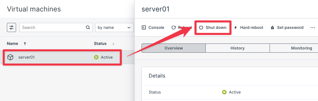 Det kan finnas flera skäl till varför man vill stänga av sin server i Oderland Cloud, exempelvis om man har för avsikt att inte använda den på ett tag. För att stänga av en server, följ instruktionerna här nedan.