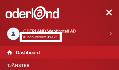 Du kan se ditt kundnummer vid sidan om ditt namn i högst upp åt vänster när du är inloggad i Kundavdelningen: