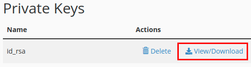 Manage SSH Keyspage click onView/Downloadto the right of the private key.