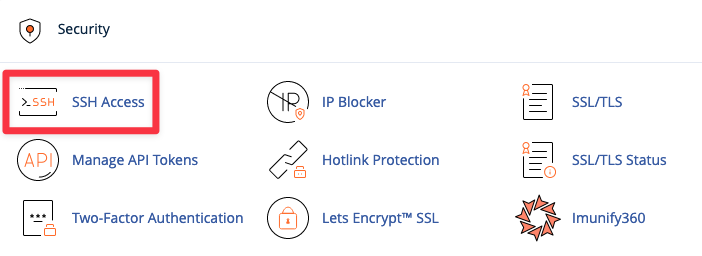 SSH Accessicon in theSecuritysection.