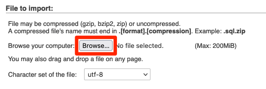 If your database file is larger than 200MB, you will not be able to import it via phpMyAdmin. If it too large, try compressing it and see if it becomes smaller than 200MB. If it’s still too large, you need to import it via SSH instead (use the uncompressed file), please read the instructions below.