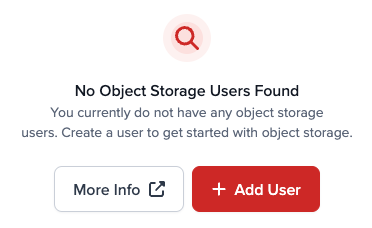 If you have users already created and want to add another one, click+ Add Object Storage Userin the top menu.