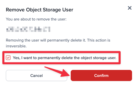 To remove an Object Storage user, follow these steps: