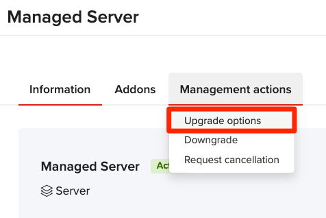To upgrade/downgrade your Managed Server, you need to log on to the Client area. Once there, you can order upgrades/downgrades by following these instructions: